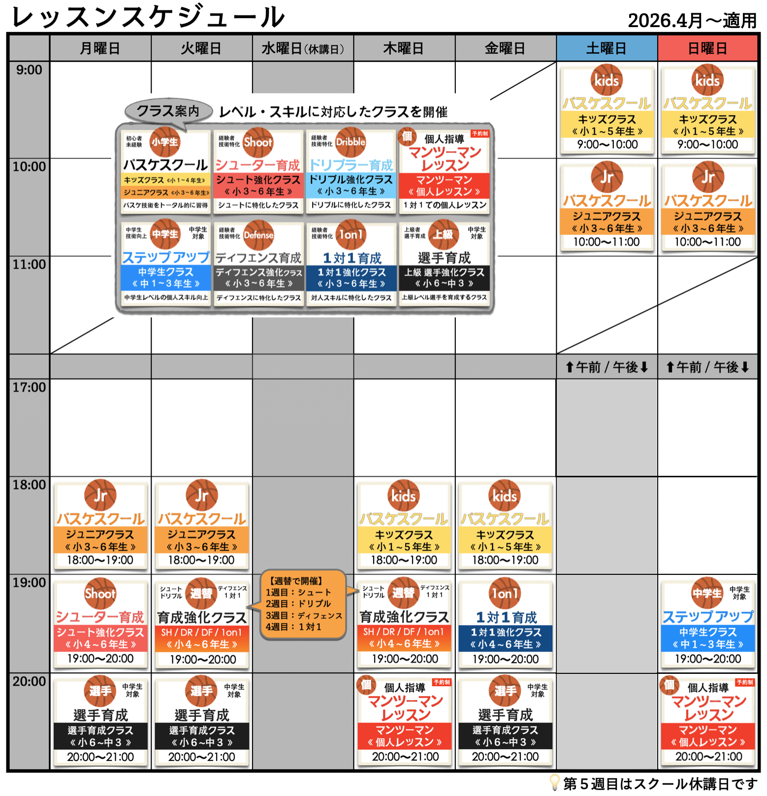 クラス概要、料金などのご案内